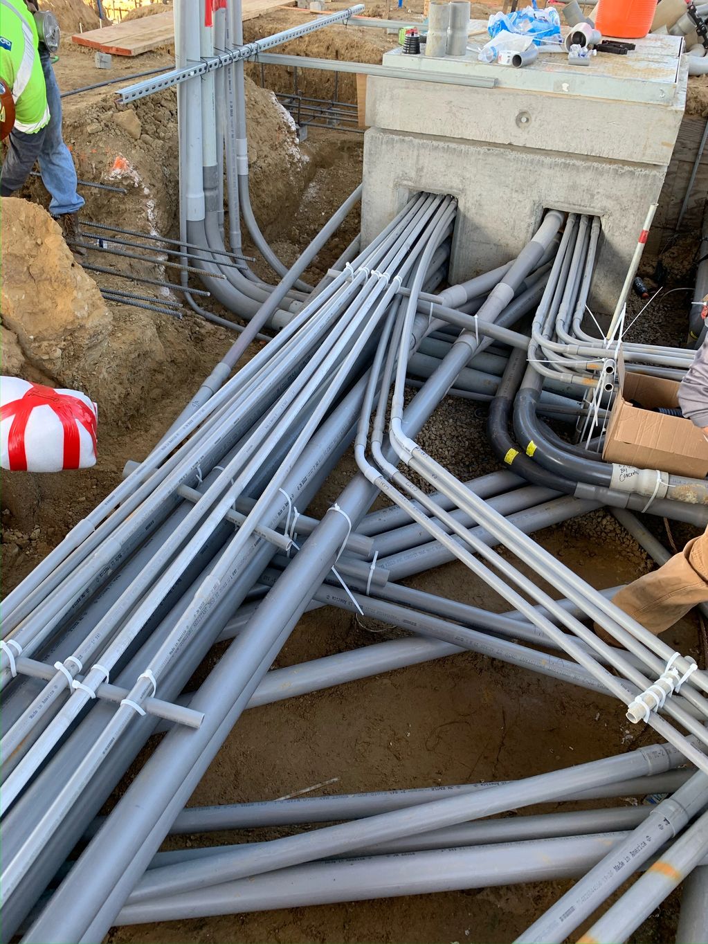 Recently completed commercial underground conduit, ranging from 3/4"-4."